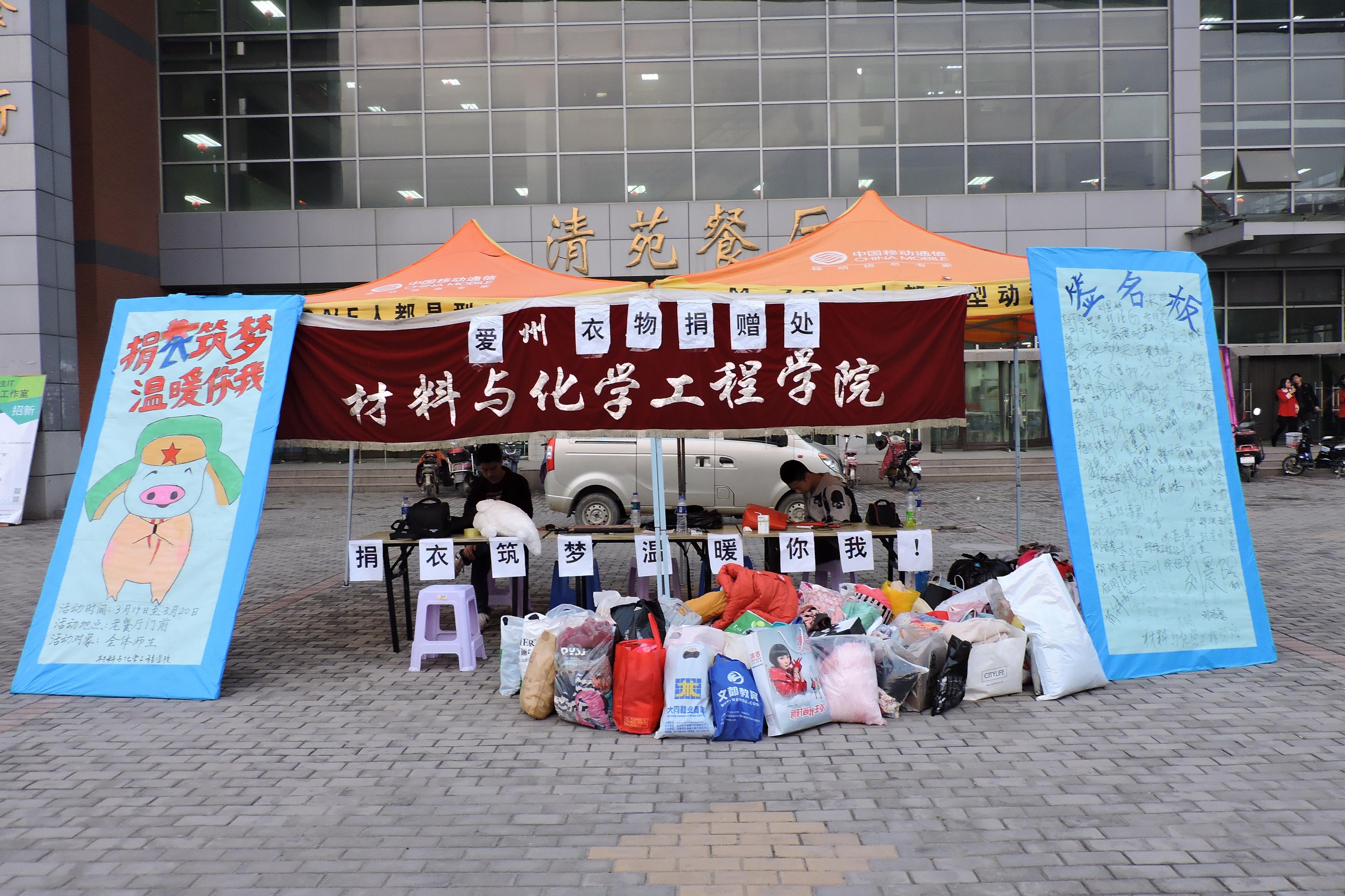 近日,了解到西藏昌都地区依然寒冷,那里的学生缺少棉衣。材料与化学工程学院通过宣传动员在科学校区组织了以“捐衣筑梦 温暖你我”为主题的爱心捐衣活动。