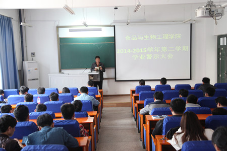 为了持续推进我院2015年“正学风、聚能量”学风建设活动,4月17日中午,食品与生物工程学院在食工楼209教室召开了2014-2015学年第二学期学业警示教育大会,学院副院长景建洲教授、部分辅导员和被警示学生参加了此次大会。