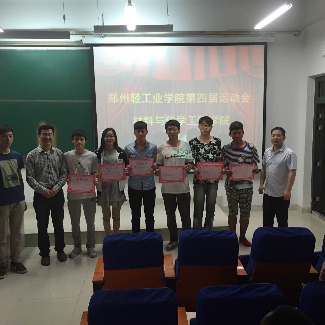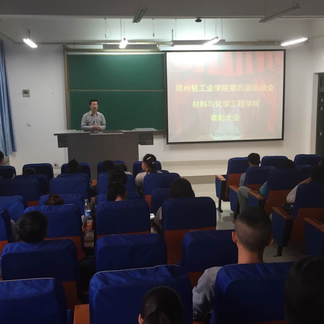 在刚刚结束的学校科学校区第四届运动会中,材料与化学工程学院全体运动健儿发挥顽强拼搏,奋勇争先的精神,在体育竞技和精神文明方面都取得了好成绩。为认真总结,表彰先进, 我院在科学校区化工楼218举行校运动会总结表彰大会,学院党总支宋德涛副书记、分团委负责人彭东来老师及全体运动员、礼仪方阵代表、文明班级代表参加了会议,会议由分团委负责人彭东来老师主持。