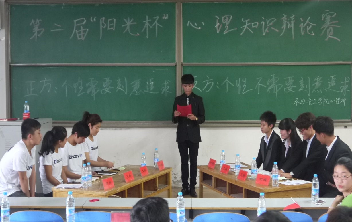 6月11日下午,由郑州轻工业学院心理健康教育中心主办、食品与生物工程学院心理健康教育工作办公室承办的“追逐阳光,激扬青春”为主题的第二届“阳光杯”心理知识辩论赛在科学校区圆满结束。