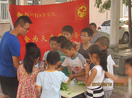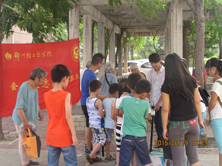 2015年6月19日下午,食品与生物工程学院“食为天”志愿服务队联合郑州市金水区东风路街道办事处“文明使者志愿服务站”,在轻院社区举办了以“端午美‘识’进社区”为主题的志愿服务活动。
