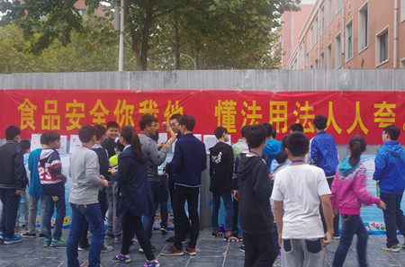 为了进一步普及《食品安全法》相关知识,增进中学生对食品安全的参与意识,20151022日下午,食品与生物工程学院“食为天”志愿服务队在郑州市五十八中举办食品安全法宣传活动。
