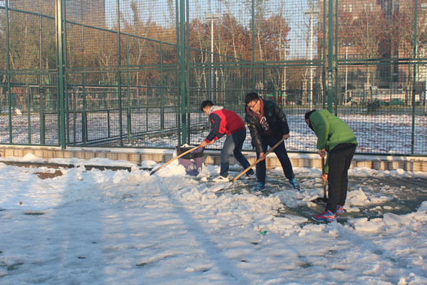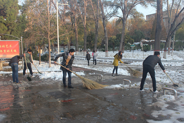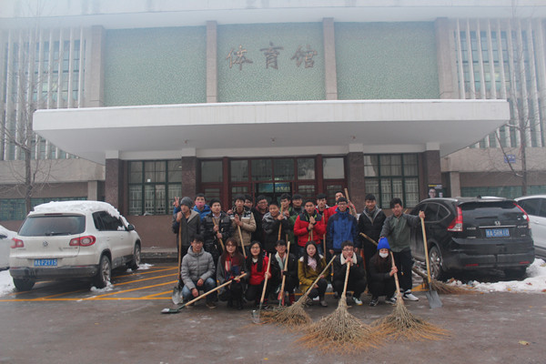 为了提高学生爱校护校的积极性,方便师生出行,体育学院于11月25日下午组织学生来到运动场进行义务除雪活动。