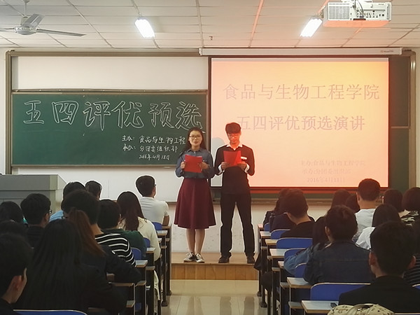 为弘扬五四精神,切实加强基层团组织建设,展现当代大学生精神风貌,食品与生物工程学院(烟草科学与工程学院)于4月18日中午在一教楼305举办了五四表彰先进集体和优秀个人评选大会。全体专兼职辅导员及各支部学生代表参加了大会。