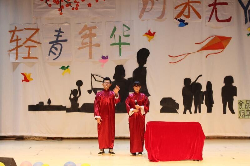 本次晚会以“轻青年华,别来无young”为主题,用相伴大学生五彩缤纷的四季来呈现,将晚会分为初春、盛夏、深秋与暖冬四部分,饱含了毕业生大学生活的欢笑、泪水、追求与不舍。晚会第一部分是朝气、蓬勃的初春,爵士舞《sugar star》以新颖的舞蹈形式展现出现代大学生的青春与活力;相声《我的大学》给大家带来了一个搞怪、逗趣、积极向上的大学生活,让毕业生回忆刚来到大学时羞涩的自己。第二部分是欢乐、激情的盛夏,舞蹈串烧动感的节奏、优美的舞姿迅速点燃了现场激情;短剧《毕业两年后》将整台晚会推向高潮,幽默的语言、搞怪的表演,与台下观众风趣的互动,引得现场笑声连连,使人印象深刻。第三部分是难分难舍的深秋,民美歌曲《告别时刻》让毕业生真正的体会到了离别时刻的到来;朗诵《流淌的须水 轻院的青春》勾起了大家对大学生活的无尽回忆,毕业生们深情地倾诉着对母校和学院的眷恋不舍之情。第四部分是感伤、温馨的暖冬,研究生们深情献唱《张三的歌》,让毕业生们回忆青春,珍惜现在;小品《要,毕业了》其中穿插着哑剧的形式,为大家展现了一场宿舍四兄弟不忍离别,不忍说再见的情景,兄弟情深,温暖心房,现场留下了感动的泪水,仿佛不说再见已成为每位毕业生心有灵犀的默契。晚会节目新颖,内容丰富,有深情的朗诵、欢快的歌曲、诙谐的模仿秀和话剧、优美的舞蹈以及唯美乐器演奏把晚会推向了一个又一个高潮。伴着辅导员们倾情演绎的歌曲《一生有你》,典礼在毕业生与老师们合影留念中落下了帷幕,所有的不舍、感激、祝福、憧憬和期盼都定格在了这一个个美好瞬间。