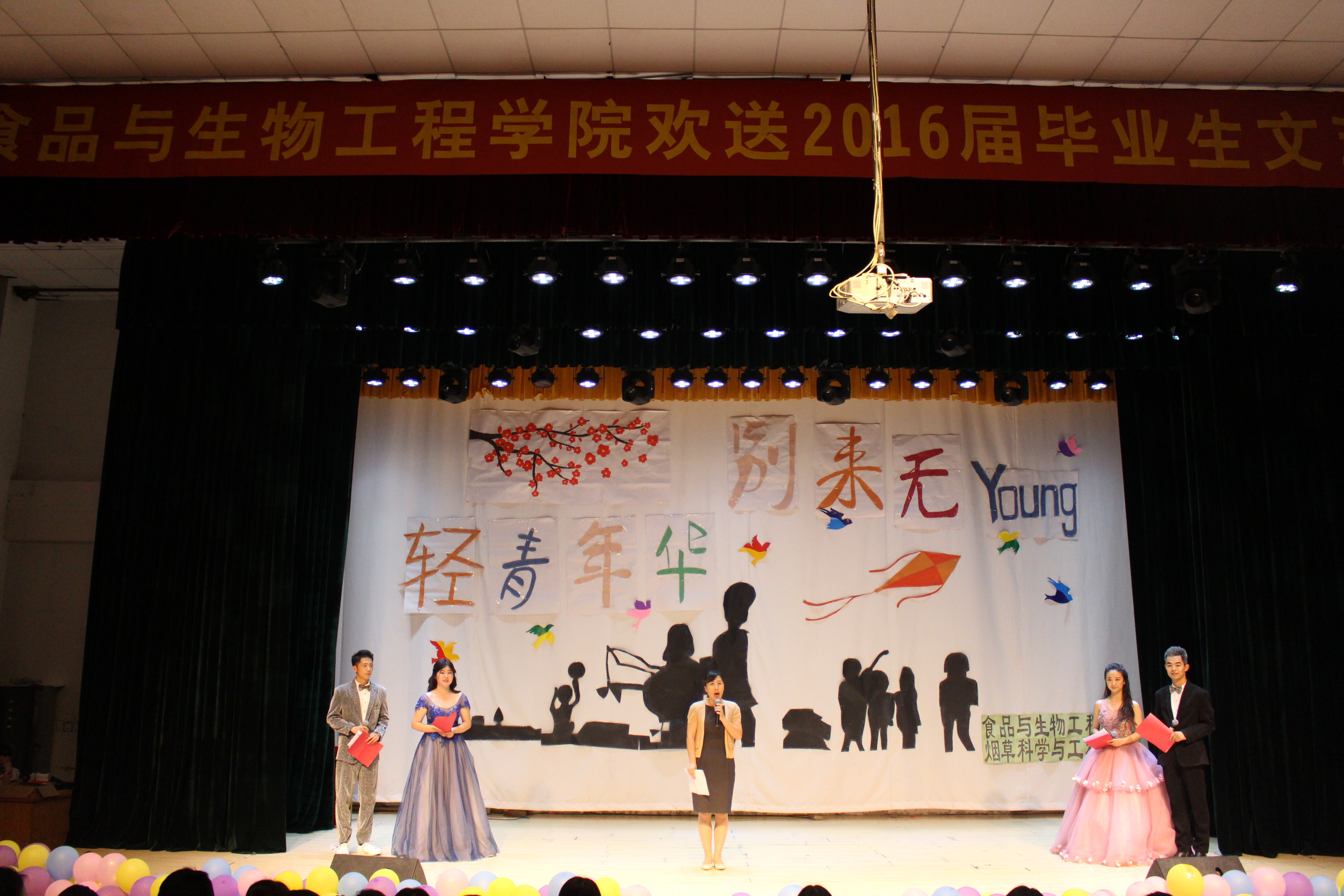 6月4日晚,食品与生物工程学院(烟草科学与工程学院)欢送2016届毕业生文艺晚会在科学校区三教楼208隆重举行。学院党政领导、教师代表、全体专兼职辅导员以及全体2016届研究生、本科生毕业生观看了此次晚会。
