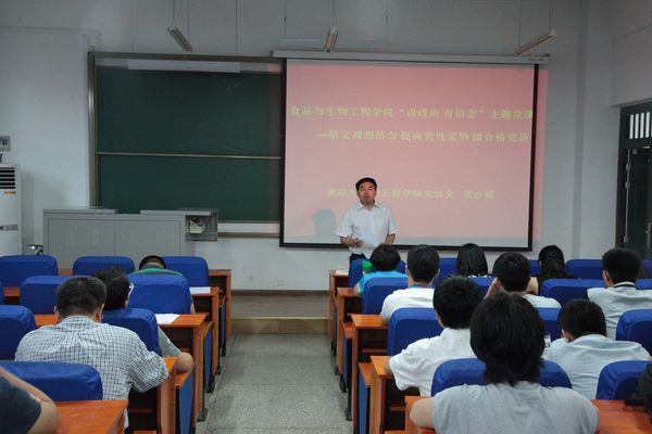 ,食品与生物工程学院党总支吴占超书记,向学院全体师生党员讲授了“讲政治有信念—坚定理想信念 提高党性觉悟 做合格党员”主题党课。同时带领大家集中学习了习近平总书记重要讲话之“作风建设要立破并举、扶正驱邪”和“切实把从严治党落到实处”。