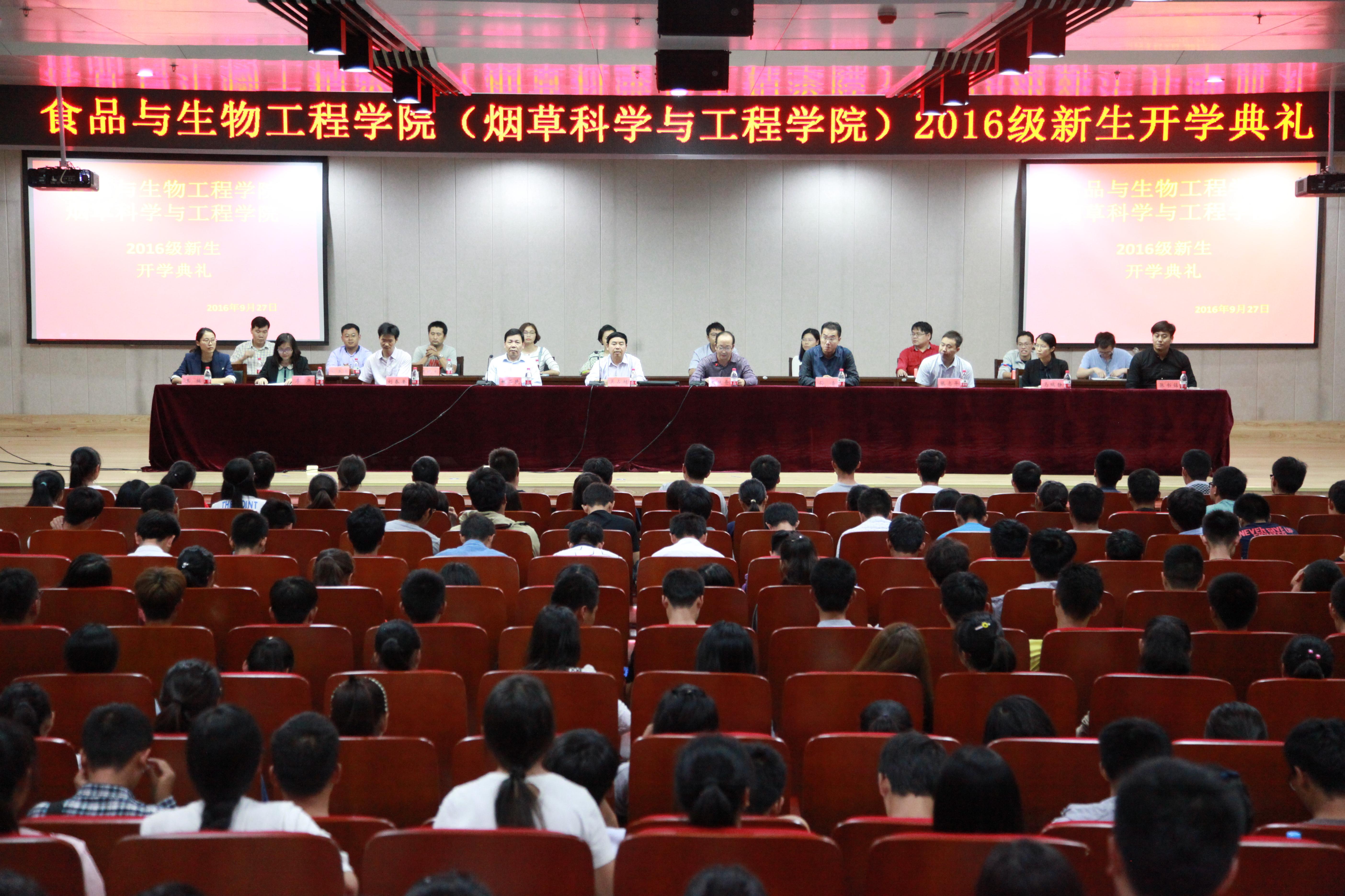 晚,食品与生物工程学院(烟草科学与工程学院)2016级新生开学典礼暨学业指导教师见面会在科学校区图书馆一楼报告厅隆重召开。学院党政领导、各系(部)正副主任、2016级学业指导老师、辅导员老师和我院2016级全体研究生和本科新生参加了此次典礼,典礼由刘延奇副院长主持。
