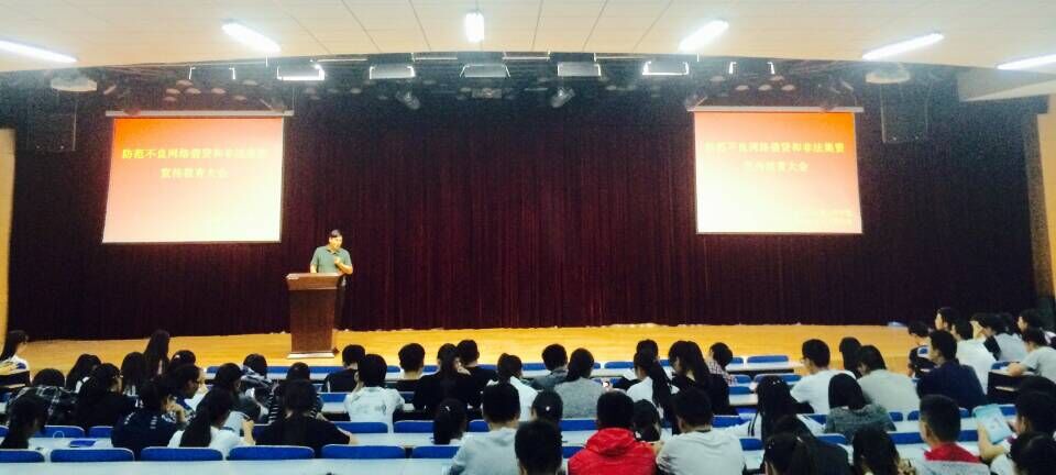 晚7点,我院在大学生活动中心楼208举办校园不良网络借贷风险防范和教育专题讲座。辅导员围绕网络贷款的背景、特点、运营模式和对大学生的不良影响展开讲解,带领大一新生共同学习《网贷知识普及手册》、《防范和打击非法集资工作宣传手册》,同时结合宣传视频,加强普及网络借贷、非法集资知识教育,增强学生网络金融安全意识和自我保护意识,引导学生树立理性的消费观。