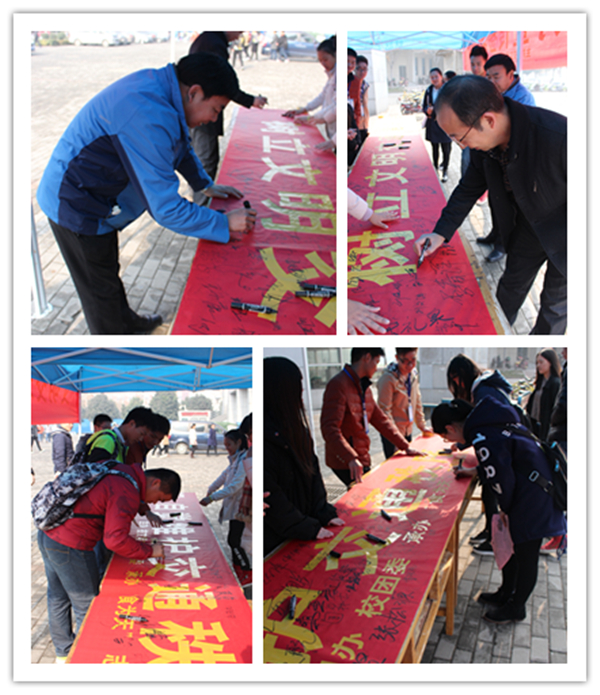 中午11点,“食为天”志愿服务队的志愿者们已经做好此次活动的准备工作。志愿者们向过往师生发放文明出行倡导书,并围绕大家出行时要注意的一些交通基本常识进行耐心的讲解,提醒同学们时刻注意交通安全,牢记安全的重要性。我校教职工和同学们纷纷在宣传条幅上签名,表达自己文明出行的决心。