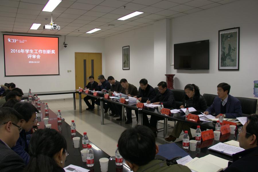 12月12日下午,我校2016年学生工作创新奖(第三届)评审会在东风校区图书馆第三会议室举行。校党委副书记窦效民出席会议并担任评委会组长,党办、组织部、宣传部、研工部、思政部等部门负责同志担任评委。学工部(处)、就业中心、团委相关人员及各学院党总支副书记、辅导员代表40余人参会。会议由学工部部长、学生处处长张世涛主持。