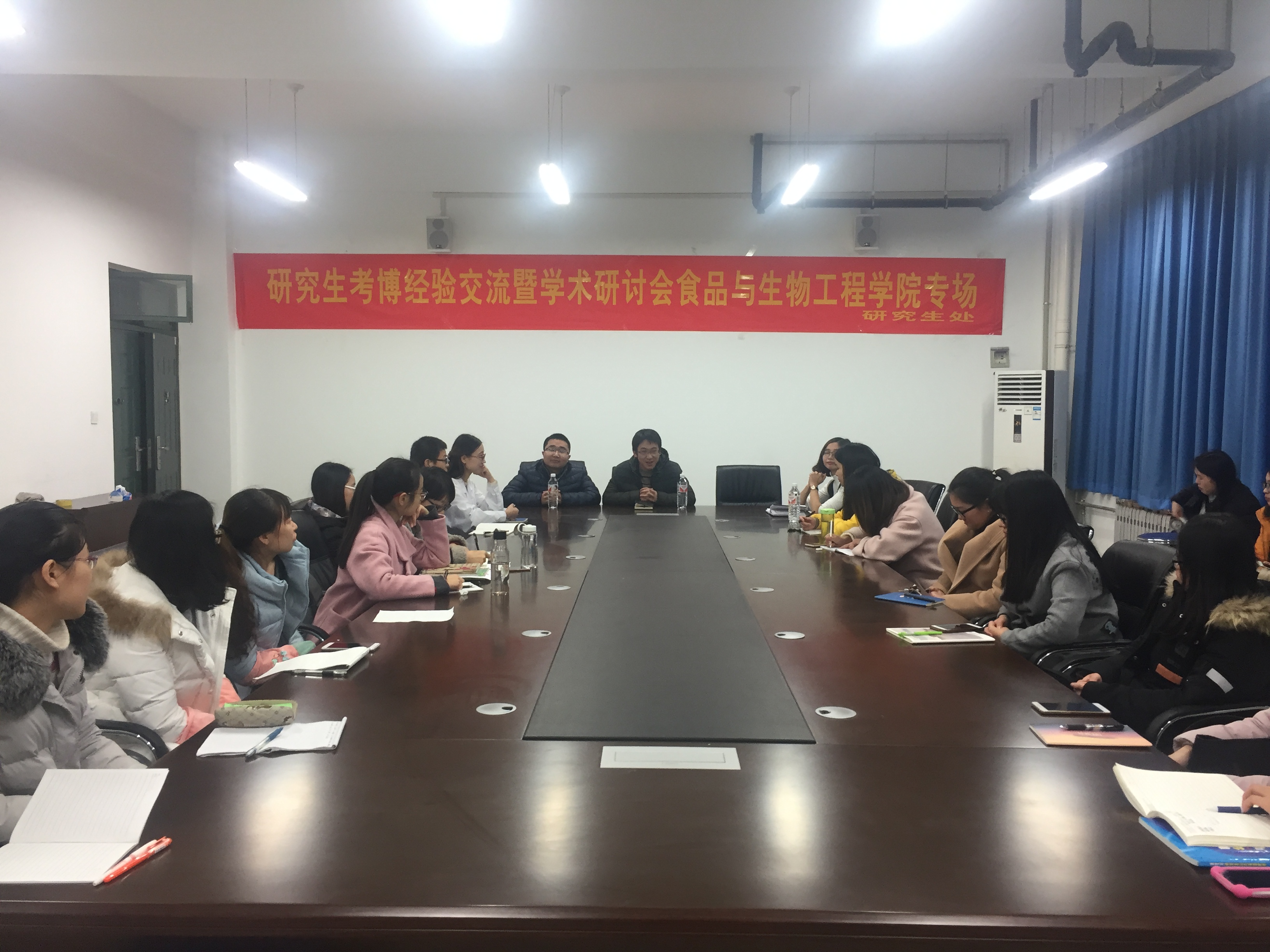 2016年12月27日,食品与生物工程学院(烟草科学与工程学院)在食工楼401室举办了研究生考博经验交流会暨学术研讨会。学院烟草系教师梁淼博士、生物系教师迟雷博士、食品系教师张艳艳博士以及全体研究生参加了此次交流会。