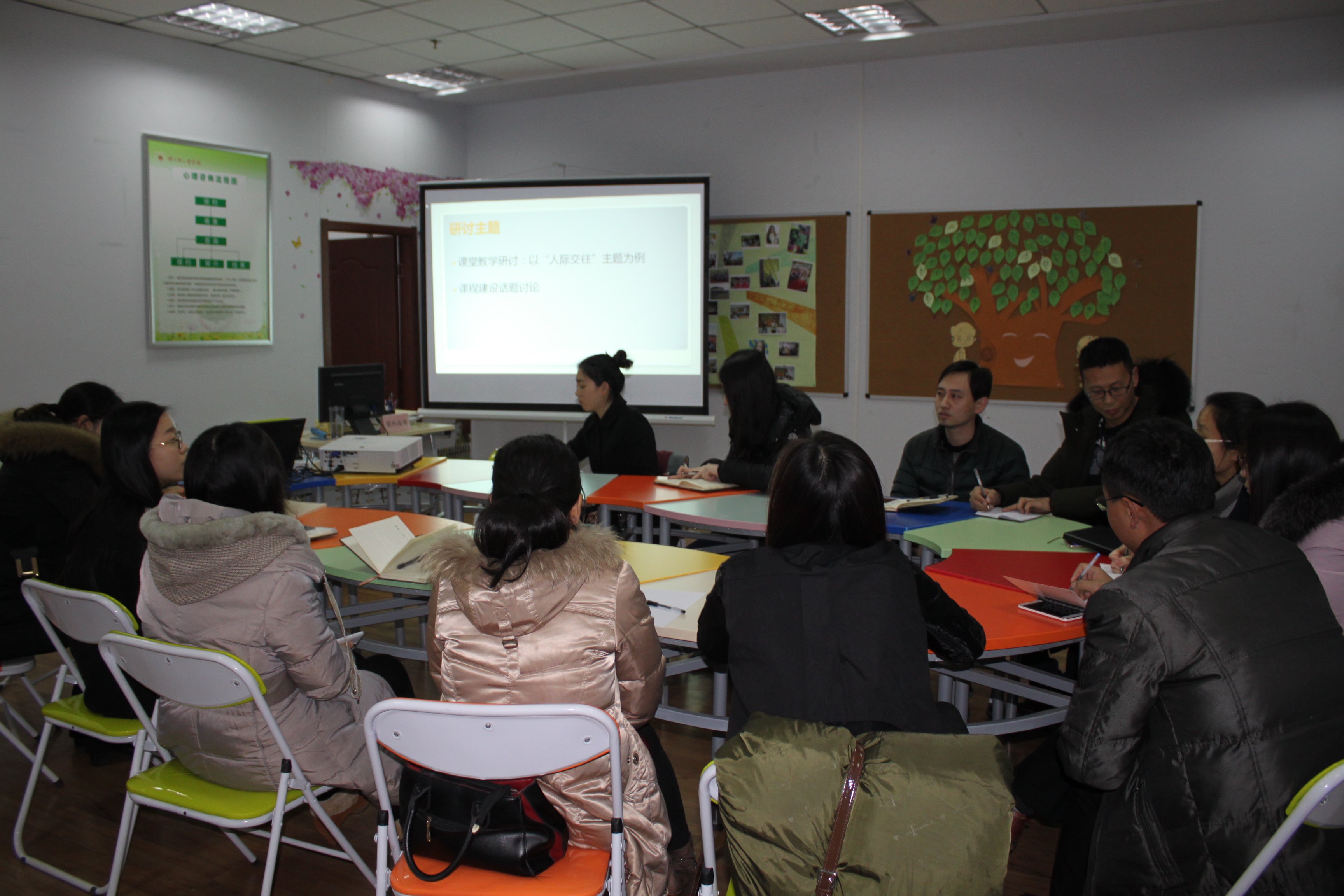 1月6日下午,心理健康教育中心在东风校区团体辅导室举办了教学研讨活动,全体任课教师及部分学院心理健康教育专职辅导员到场参加。