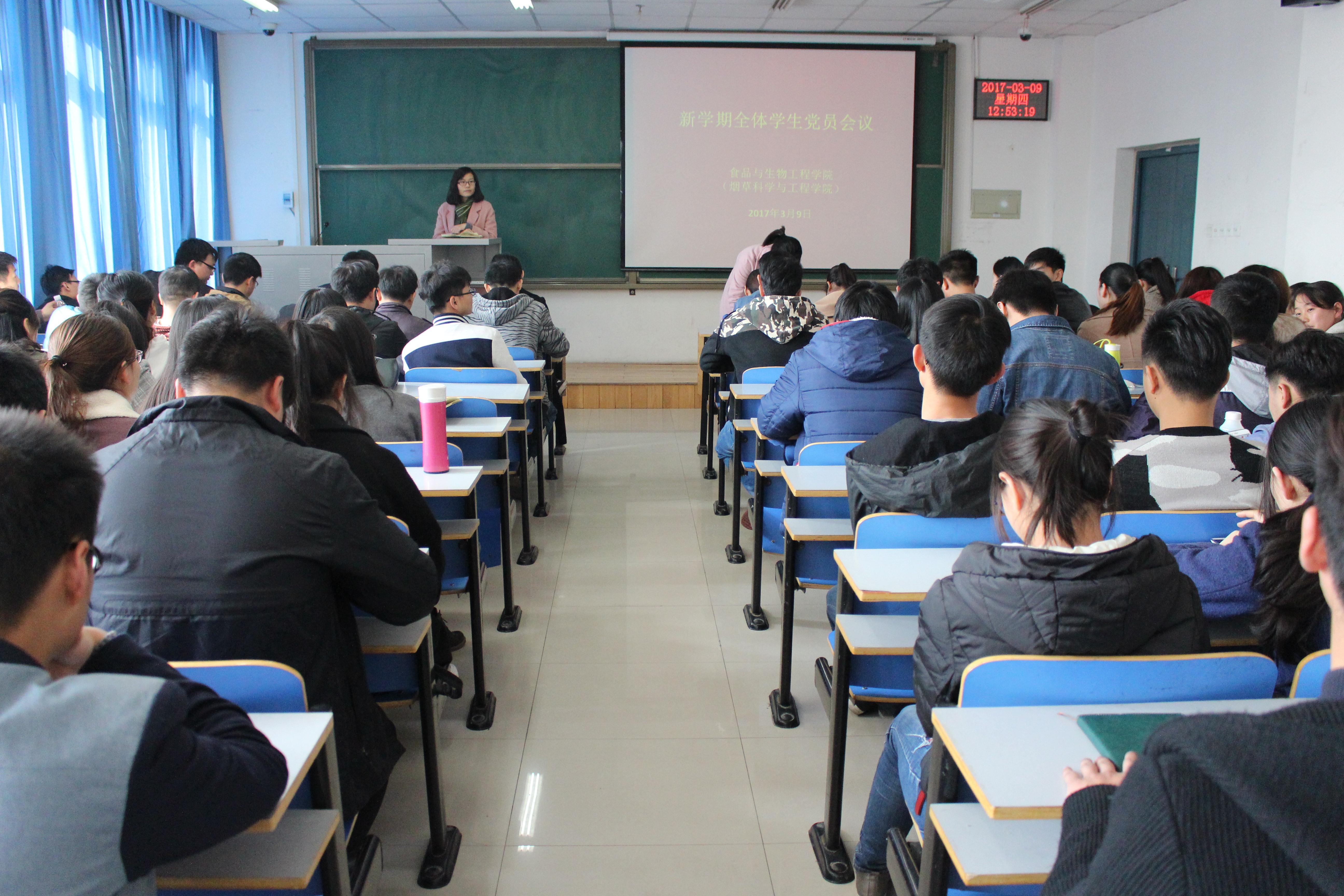 为进一步加强我院学生党员队伍建设,服务学院工作大局,39日中午,食品与生物工程学院(烟草科学与工程学院)在科学校区二教楼810教室召开全体学生党员会议。学院负责党务工作的李燕老师,本科及研究生支部全体党员参加了会议。