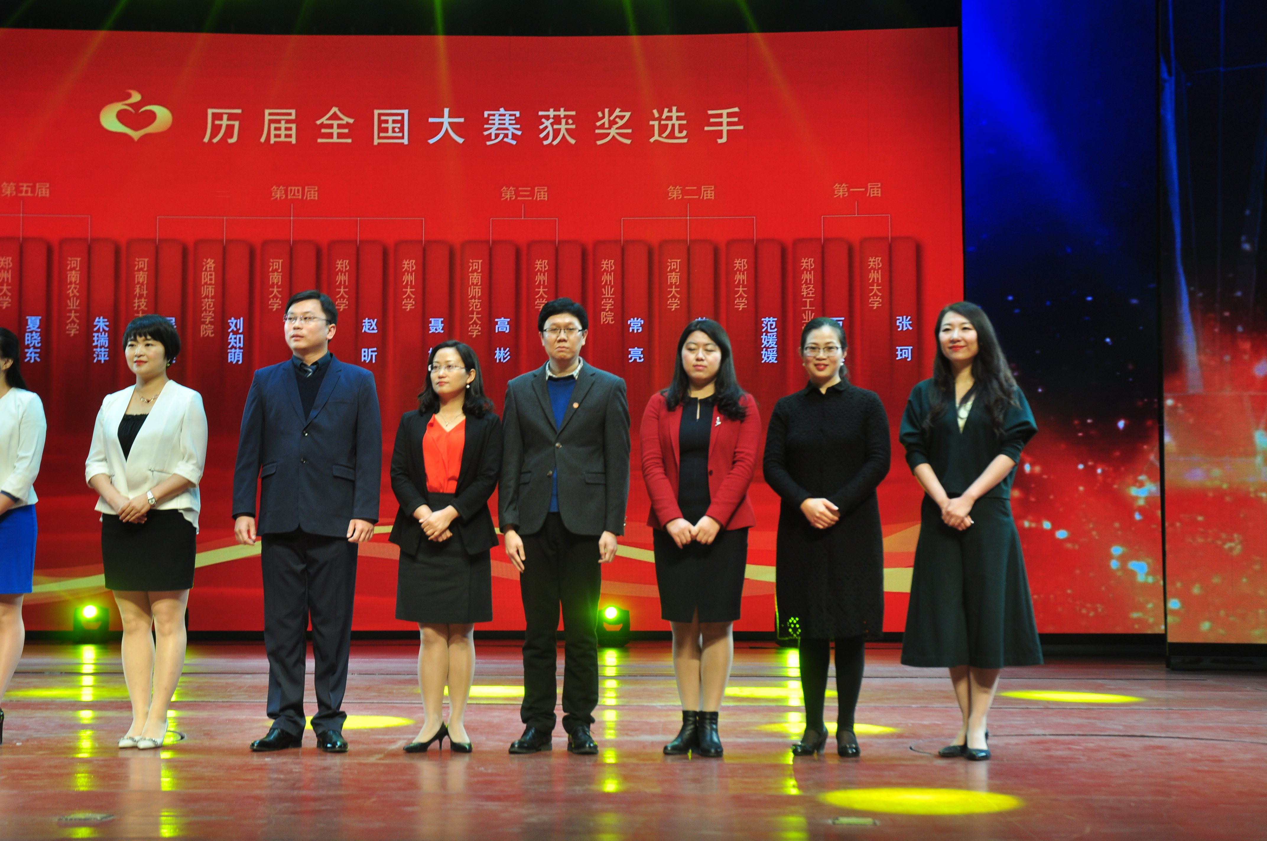 万慧杰、常亮在向河南省历届国赛获奖选手致敬环节中接受表彰