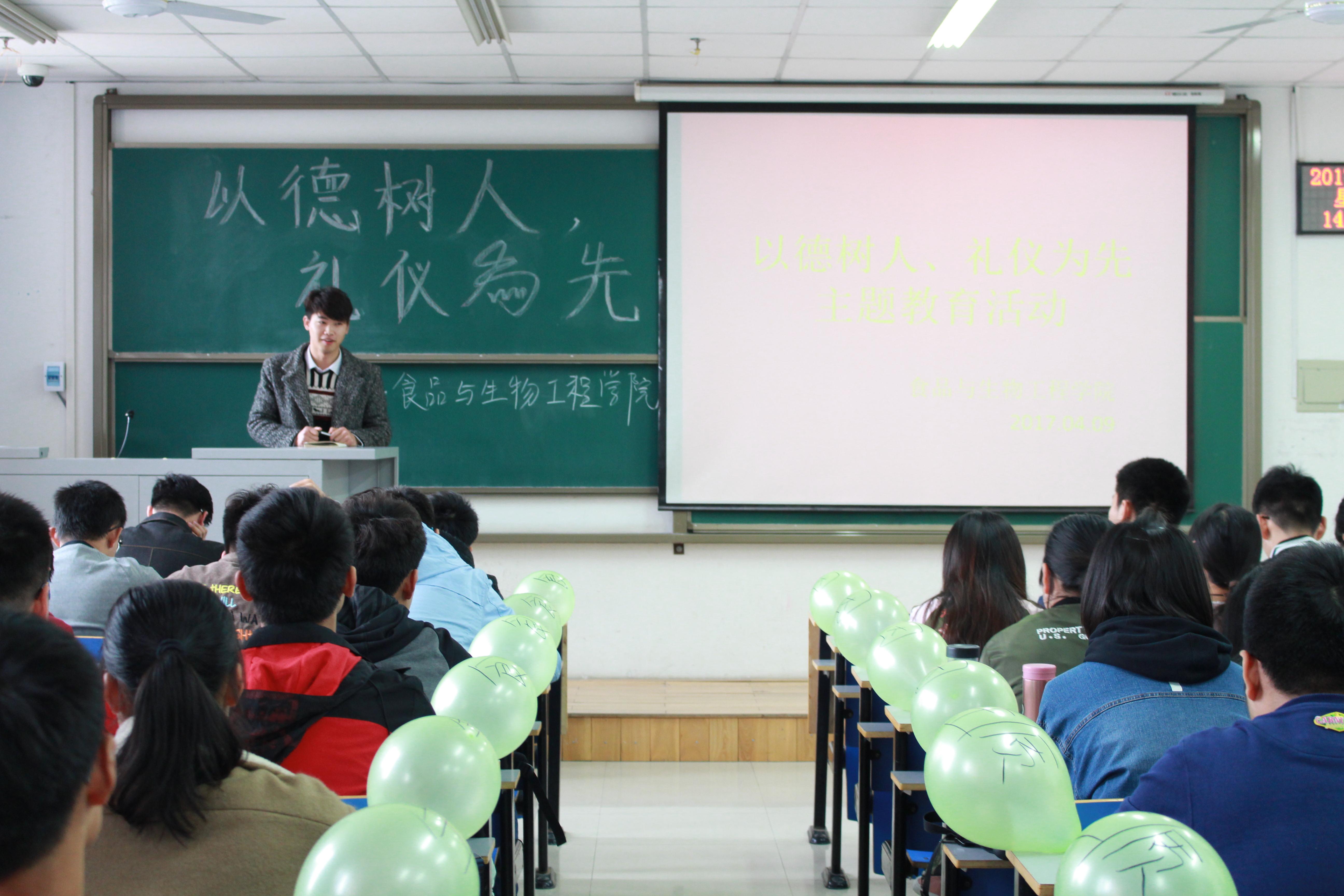 为加强我院学生文明礼仪教育、规范日常行为,培养学生养成良好的行为习惯,创建文明守礼的校园文化氛围,食品与生物工程学院(烟草科学与工程学院)于4月9日在二教楼810教室开展了“以德树人、礼仪为先”主题教育活动,我院2016级学生参加了此次活动。