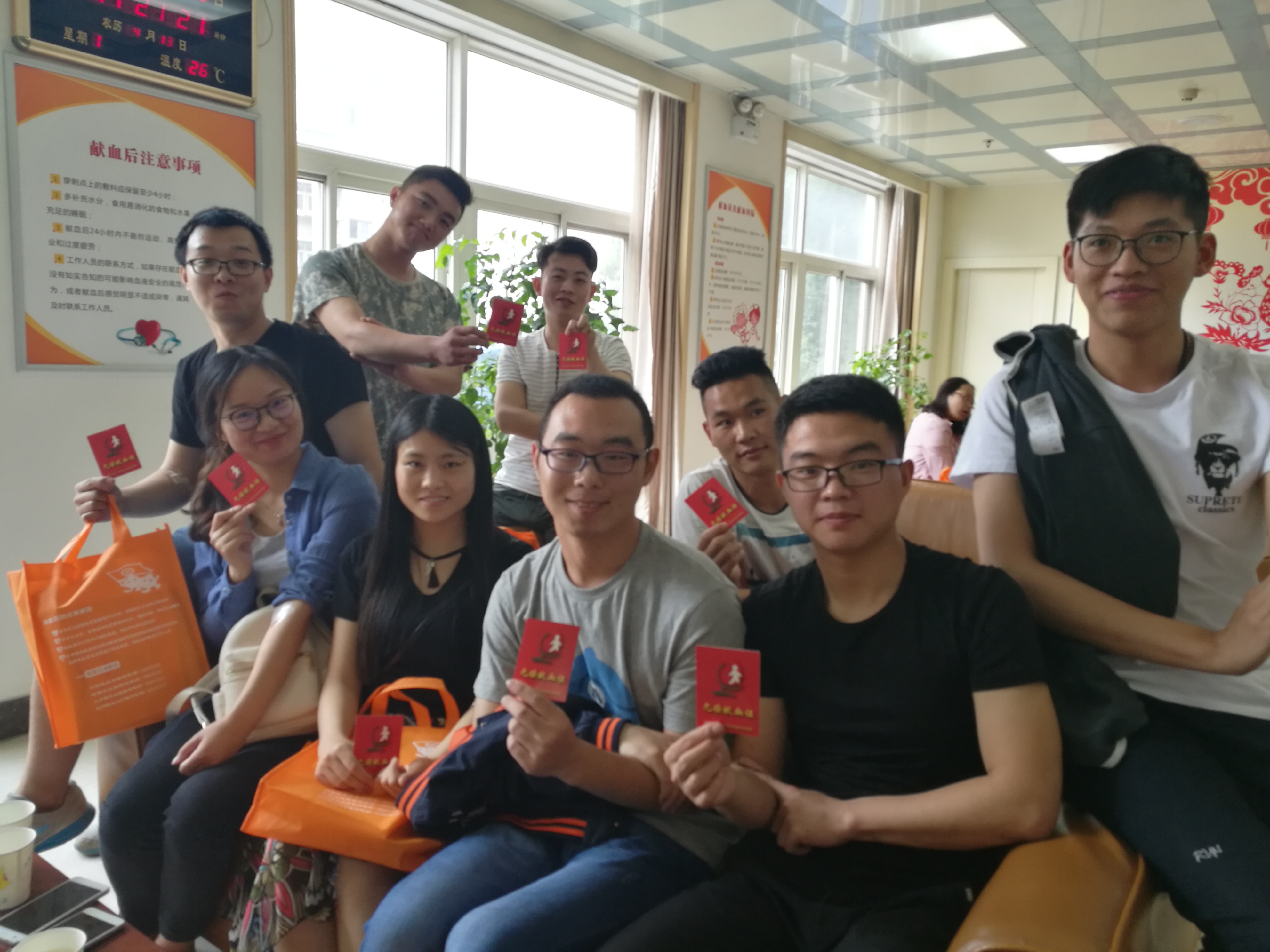 早上7点半,20余名师生志愿者们早已在教学楼前的广场集合完毕,随后统一乘车前往河南省红十字血液中心。到达献血大厅后,登记、填表、化验、等候、抽血,所有流程都井然有序地进行。一股股青春热血,一颗颗爱心满怀,他们用实际行动践行了社会主义核心价值观。大家纷纷表示,向有需要的人伸出援手,向社会奉献爱心,是一名共产党员应该有的觉悟和担当,在今后的学习工作中,将时刻牢记党员标准,自觉传承中华传统美德,发挥党员先锋模范作用,在不同的岗位奉献青春力量。