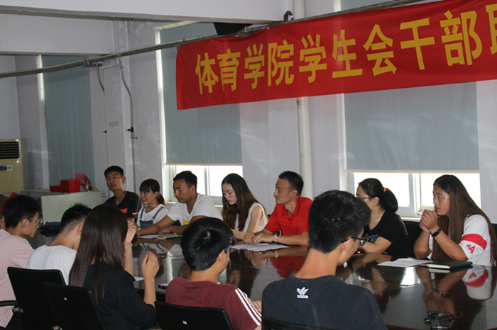 9月23日下午,体育学院在体育馆三楼会议室召开新学期学生干部大会。体育学院分团委书记石庆福老师、体育学院学生会全体成员、各班级主要学生干部以及全体2017级新生参加了此次会议。