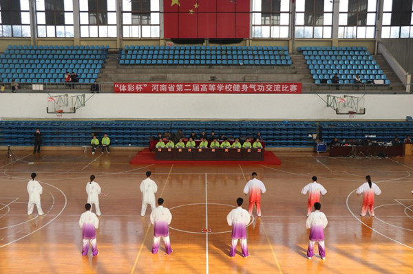 我校健身气功代表队于11月6日至7日在河南大学参加了“体彩杯”河南省第二届高等学校健身气功交流比赛。本次比赛由河南省体育局、河南省人民政府防范和处理邪教问题办公室、河南省教育厅主办,河南省健身气功管理中心、河南省健身气功协会、河南大学承办。来自全省23所高校的130余名运动员参加了本次比赛。