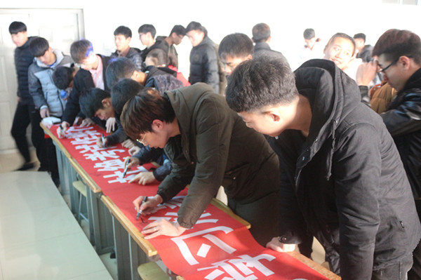 会议开始,主持人通过展示PPT和观看诚信考试教育片,对诚信考试的重要性作出了强调。随后,学工办主任李羚玮老师又带领同学们重新学习了考试纪律、考生需知及考试违纪处罚条例,并例举出真实违纪违规案例及其严重后果,告诫同学们严格遵守各项考试纪律,不做违纪之事,不抱侥幸心理,认真复习备考,考出理想成绩。最后,在各班班长的带领下,到会同学一起在诚信横幅上签下了自己的名字。
