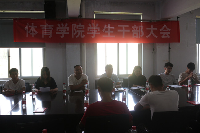9月10日上午,体育学院在体育馆三楼会议室召开新学期学生干部大会。体育学院副院长方慧老师、分团委书记石庆福老师、全体学生干部以及全体2018级新生参加了此次会议。