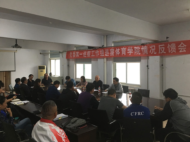 会前,党委第一巡察工作组对体育学院领导班子就巡察发现的问题进行反馈,并就巡察整改工作提出明确要求。反馈会上,党委第一巡察工作组组长黄守佳通报了巡察工作组对体育学院巡察的总体情况,肯定了体育学院的工作成绩,指出巡察中发现的五个方面问题,并提出整改意见和建议。体育学院党总支书记郗冰杰、院长李向东分别代表学院党政作表态发言,认为巡察工作组反馈的情况实事求是,全面客观。表示要对巡察整改认识到位,全面认领反馈意见;聚焦问题,增强整改的针对性和实效性;细化措施,积极行动,扎实做好整改落实,以整改的成效推动学院各项工作再上新台阶。