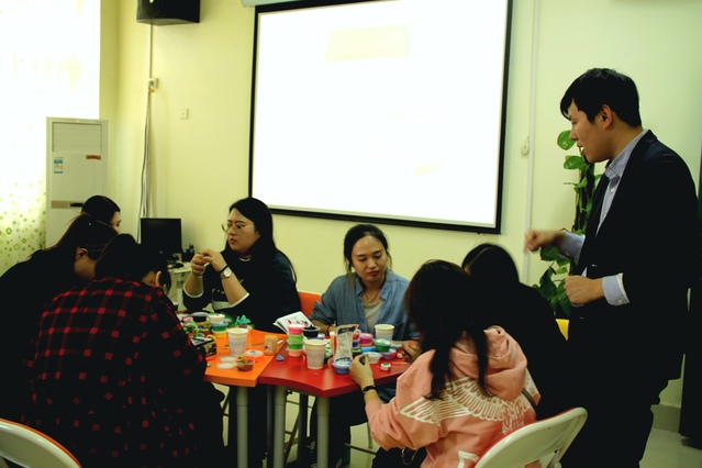 软件学院辅导员李白毅老师为大家补充了色彩心理学知识,通过案例说明了色彩如何通过视觉从感知、记忆、情绪、意志、象征、想象等等方面不断影响心理。分享了如何通过自己喜欢或讨厌的颜色来对自我性格进行分析,加深自我认知,帮助学生分析其思维模式与行为方式,发现存在的优势和不足,找到改善的方向。在色彩拓展活动“湿拓画”和“超轻粘土”环节中,辅导员老师通过认真学习观摩,全身心投入动手实践,运用色彩和手工的方式与心灵进行深入交流,安静地体会自我,更深刻地认识了自我。参与的辅导员老师表示,本次活动不仅释放了压力,放松了情绪,更重要的是还初步掌握了分析情绪和释放压力的技能,为工作提供了新的思路。