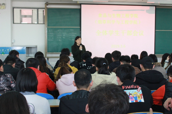 为进一步增强学生干部的使命感和责任感,提高学生干部的工作水平,食品科学与工程学院(烟草科学与工程学院)于3月6日中午在二教楼816召开了全体学生干部会议。学院党总支副书记李英梅、辅导员老师和全体本科、研究生班级主要学生干部、团学干部参加了本次会议。