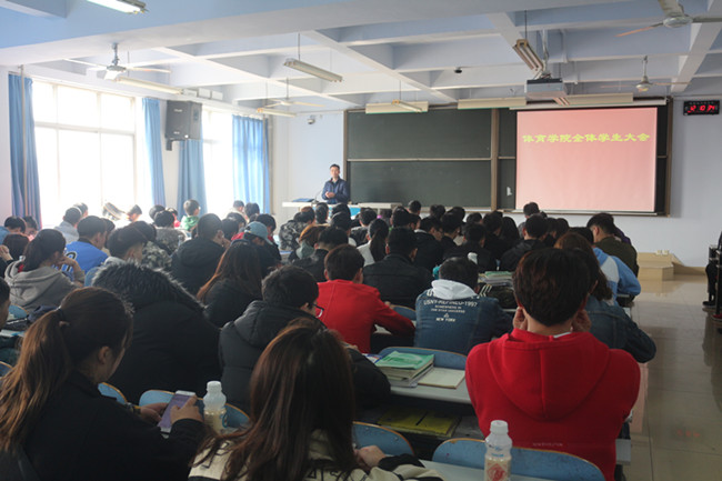 2019年3月6日中午,体育学院在教三楼801召开期初全体学生大会。体育学院党总支副书记谭俊超、分团委书记石庆福、学工办主任李羚玮以及学院全体学生参加会议。