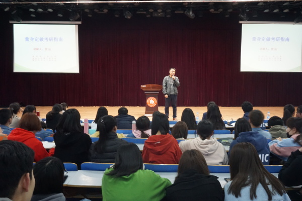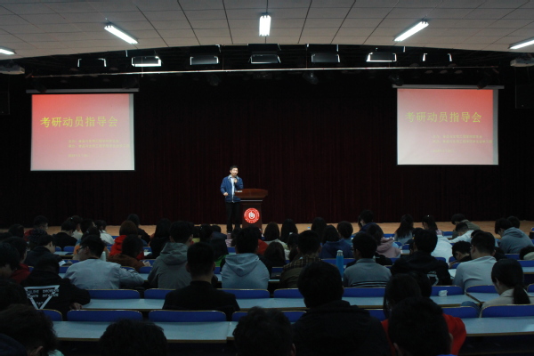 刘院长从未来发展的角度强调了考研的重要性,激励同学们做到理想坚定,顽强拼搏,接着对我院的团队建设、科研成果以及研究生奖助条例等进行详细说明,阐释了学校硕士研究生的录取政策,鼓励同学们积极报考我校。随后三位专业指导老师针对“为什么考研、考研的意义、考研的方向”等方面向大家做了精彩而细致的阐释,分析了当前考研的动态和方向,从专业选择及学制等方面进行讲解,提醒大家找准定位,合理报考。同时向同学们传授有关考研初试和复试的宝贵经验,鼓励同学们坚定信心,踏实学习,看清自己,明确方向,知悉未来,夯实基础。最后同学们进行现场提问,各位指导老师做了耐心细致的解答。在此期间全体同学认真聆听,仔细记录,受益匪浅,本次考研动员会持续了两个半小时,全场座无空席,最后在如雷般的掌声中圆满落下帷幕。