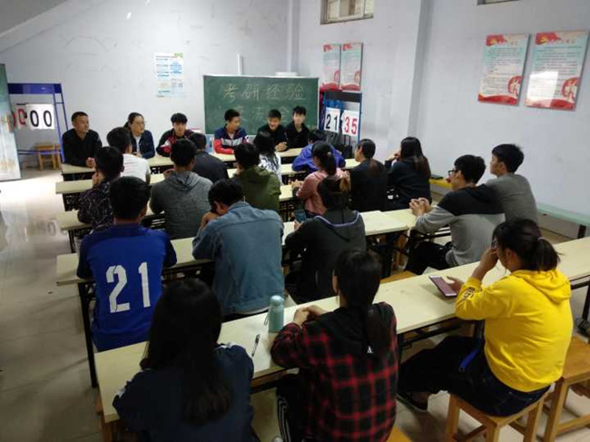 会上,4位同学分别从考研前期准备、专业课和公共课的复习技巧、如何合理调配时间以及考后如何选择调剂等内容向同学们介绍了各自的宝贵经验。在答疑过程中,低年级同学积极踊跃的提出心中疑问,几位同学纷纷给予耐心细致的解答。最后李老师作出总结,对于考研同学取得的优异成绩给予祝贺,并为备战考研的同学们分析了当前的考研形势,鼓励同学们沉下心积极备考,并由衷的希望同学们要有一种坚强的意志、顽强的毅力、永不放弃的精神对待考研,早日实现自己的青春梦想。