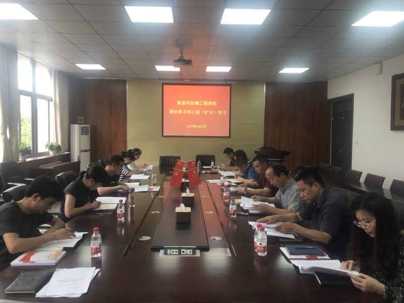 6月3日下午,食品与生物工程学院在科学校区食工楼211会议室召开理论学习中心组(扩大)学习会,学院全体班子成员,各支部书记参加学习会,会议由党总支书记张阳主持。