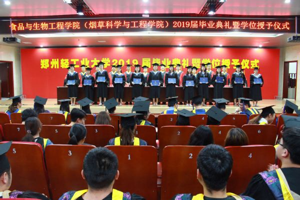 上午11:30,食品与生物工程学院(烟草科学与工程学院)在科学校区逸夫图书馆学术报告厅隆重举行2019届毕业典礼暨学位授予仪式。学院党政领导、导师代表、2019届研究生及本科毕业生参加了典礼。典礼由学院党总支副书记李英梅主持。