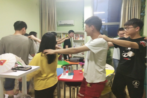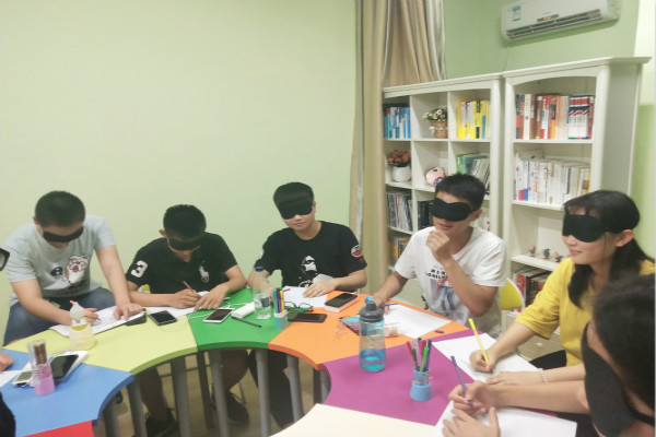 此次培训活动主要从相识、相知、成长和祝福四个阶段进行,每个阶段根据不同的辅导目标设计不同的主题,通过有针对性的活动,重点引导学生在过程中分享、感悟、觉察、思考和积极行动。在相识——“缘来是你”阶段,通过“我想认识你”、“和我一样”等热身活动消除紧张感的同时,增加同学们相互之间的信任感;在相知——“知己知彼”和成长——“遇见更好的自己”阶段,通过“你做我学”、“交换名字”、“蒙眼作画”、“我的故事书”等活动,让同学们看到自己的成长,并学会相互包容、懂得感恩。在祝福——“携手共进”阶段,通过“礼物大派送”、“祝福彩蛋”、“我的理想”等活动,让同学们感受到人与人交流的温馨和可贵,为良好的宿舍氛围做出积极地努力。