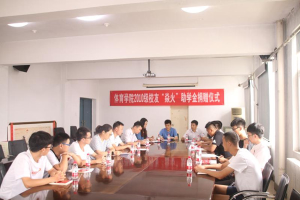 7月12日上午,“焱火”助学金捐赠仪式在体育学院三楼会议室举行。体育学院2010级优秀校友单长春、郑卫兵、唐阳,校友总会办公室主任卢中宁、党委学工部部长、学生处处长张世涛、体育学院党总支书记方慧、党总支副书记谭俊超以及师生代表出席了本次捐赠仪式。仪式由体育学院党总支副书记谭俊超主持。