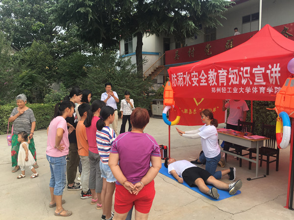 活动中,为了让孩子们更加深刻地认识暑期防溺水的重要性,队员们精心准备了暑期防溺水安全教育宣传页,现在发放给孩子们,并进行现场讲解,让孩子们清晰了解暑期防溺水事项。同时,队员们现场向孩子们示范并讲解了救生圈、救生衣的使用方法,并详细讲解了心脏复苏的操作方法,带领小朋友们进行了实操教学,得到了家长和孩子们的欢迎和认可。在室内,队员们通过PPT向孩子们集中讲解了暑期防溺水相关知识。队员们在讲解过程中通过采用有奖问答、分组讨论、小游戏等形式,将防溺水知识寓教于乐,让孩子们在欢快的笑声中学习了知识,增强了防溺水安全意识。