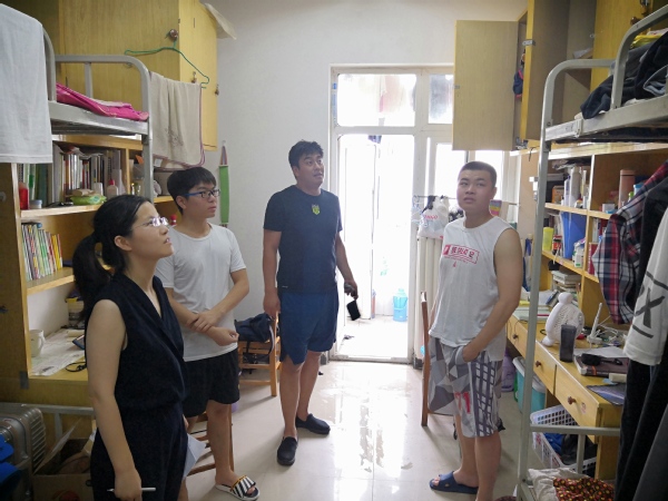 随后,辅导员老师们走访了暑期留校学生宿舍。为保证走访过程顺利进行并覆盖到所有留校学生,老师们提前对留校同学进行了全面统计。走访过程中,针对用电安全、财产安全,人身安全、宿舍卫生等问题,老师对同学们进行了耐心的讲解和叮嘱,提醒大家注意暑期安全。同时对留校学生的学习和生活情况进行了细致的询问。通过走访发现,暑期因天气炎热,同学们的晚间休息受到些许影响,但同学们的学习热情非常高涨,充分利用图书馆、自习教室的凉爽环境努力复习。老师们提醒大家把握复习节奏进度,劳逸结合,争取考入理想的院校。