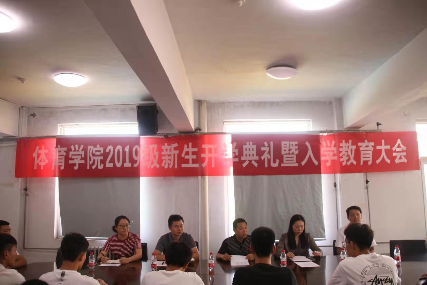 9月6日上午,体育学院在三楼会议室举行2019级新生开学典礼暨入学教育大会,体育学院领导班子、专业教师代表、全体辅导员和2019级新生参加了此次会议。会议由学院党总支副书记谭俊超老师主持。