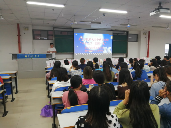 为丰富研究生节日精神文化生活,培养和树立认知传统、尊重传统、继承传统、弘扬传统的思想观念,食品与生物工程学院全体研究生于9月12日在二教816室举办“中秋佳节 团圆一堂”迎中秋主题文化活动。