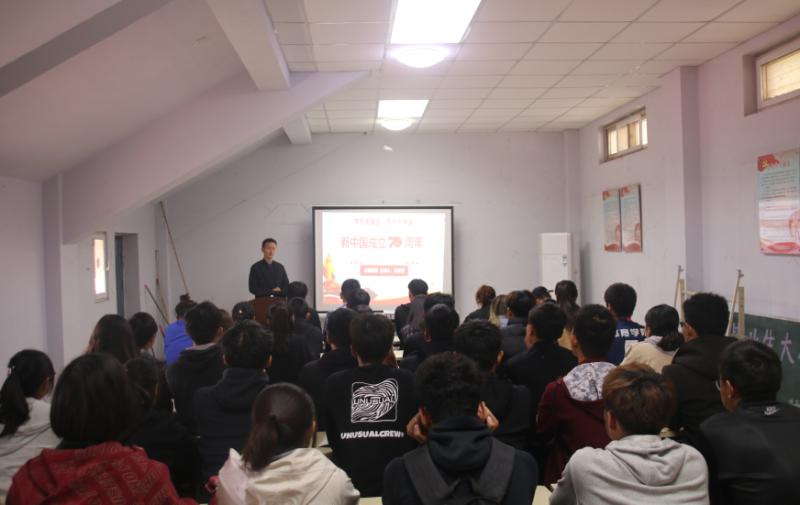 在团课过程中,石老师带领同学们一起回顾了新中国成立的伟大意义、新中国成立70年来的光辉历程、伟大奇迹和历史启示,并结合实际谈了随着祖国的发展强大,广大人民群众的生活发生的巨大变化。接着,石老师同大家一起观看了“习近平总书记在庆祝新中国成立70周年大会上的重要讲话”视频,带领大家认真学习了习近平总书记的重要讲话内容,要求同学们认真学习领悟习近平总书记重要讲话精神,以习近平总书记重要讲话精神为指引,努力学习科学文化知识,争做时代的有为青年,为实现中华民族伟大复兴的中国梦不懈奋斗。最后,参加团课学习的同学们踊跃发言,表达自己的学习感受和对祖国的美好祝愿。
