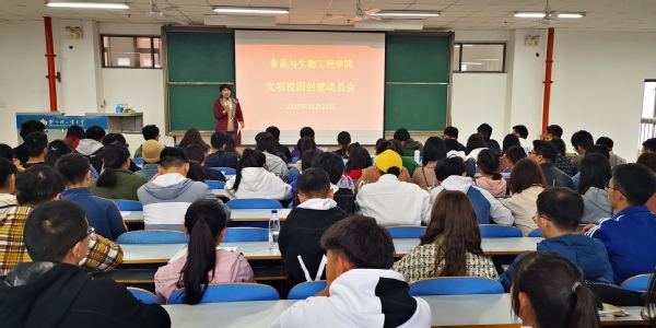 为助力我校文明校园创建工作,落实学校学院有关工作要求,10月22日中午,食品与生物工程学院(烟草科学与工程学院)在二教楼816室召开文明校园创建动员会。学院分团委书记王楠老师、学工办主任李燕老师,全院本科生、研究生党员及学生干部参加会议。
