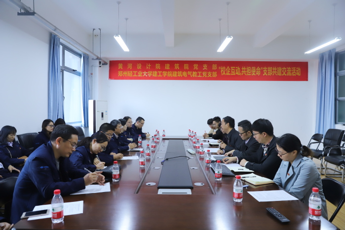会上,建筑环境工程学院党总支刘吉彬书记首先对黄河设计院领导及其建筑院党支部党员一行的到来表示热烈欢迎,并就学校以及学院的总体概况进行了介绍,希望校企双方在“不忘初心,牢记使命”主题教育活动中,以此次校企支部共建交流活动为抓手,充分发挥党支部的战斗堡垒作用,在原有校企深度合作的基础上积极探索和开展基层党支部的共创、共建、共赢和共发展;黄河设计院白本举副总工对我校特别是建筑电气与智能化专业近年来在人才培养、教学科研、校企合作等方面取得的成绩表示充分肯定,简要介绍了设计院的发展概况、业务拓展等情况,希望借助此次活动,进一步加强合作交流,不断提高校企双方的社会知名度,进一步打造校企共建的典范;建筑环境工程学院曹祥红副院长介绍了我院建筑电气与智能化一流专业创建和人才培养模式改革等方面的情况,期待今后加强双方学科专业间的深入合作,实现平台和成果的共研共享,共同培养创新型人才,携手探索创新教育教学改革;黄河设计院建筑院党支部书记杜建伟所长结合工作实际分别对支部组成、党务和业务开展进行了介绍,希望以“校企互动,共担使命”为载体,互学、互动、互通,做实、做强、做深,进一步推动校企双方融合发展;建筑电气与智能化教工党支部书记王宏分别就支部概况、发展建设、活动开展特别支部主题教育开展的形式和实效进行了介绍,希望通过此次支部共建交流活动,相互促进,取长补短,共同提升党务工作水平,不断创新党支部工作新模式。