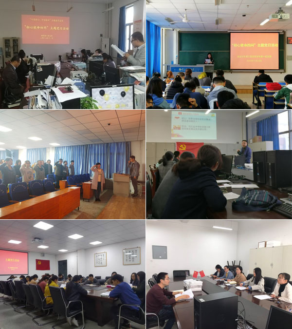 在召开党日活动前,各支部组织党员认真填写《初心使命四问表》,通过自主学习,引导党员反躬自省,查找差距。在此次主题党日活动中,各支部集中学习了《习近平关于“不忘初心、牢记使命论述摘编”》相关篇目,进一步强化理论武装,坚定理想信念。通过视频观看,再次学习了张富清、黄文秀同志的先进事迹,深刻感受共产党人为信仰舍身忘我,无私奉献的崇高精神。在此基础上,通过重温入党誓词,回想入党初心。各党支部师生党员围绕立德树人根本任务,结合学校和学院发展实际,立足本职岗位,分析个人肩负的职责任务。对照先进典型和身边榜样,查找自身在思想觉悟、能力素质、道德修养、作风形象等方面的差距不足,进一步把问题找准、把根源挖深、把整改抓实,将初心使命化为实际行动,在本职岗位上争先创优。