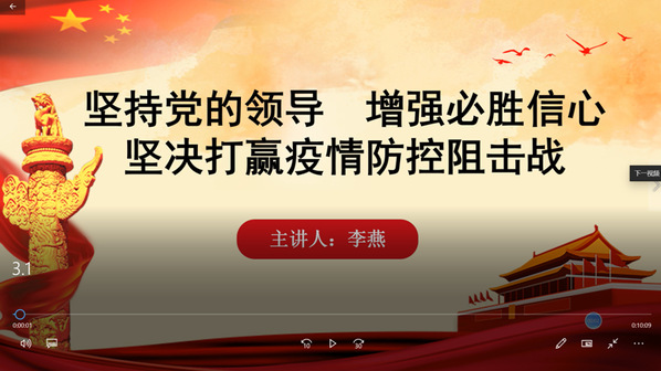 为深入学习贯彻习近平总书记关于疫情防控工作的重要讲话和指示精神,做好防疫期间学生的思想政治教育和价值引领,食品与生物工程学院于3月2日晚上开展了“坚持党的领导 增强必胜信心 坚决打赢疫情防控阻击战”线上理论宣讲活动。本次活动采用腾讯会议直播和PPT录屏播放形式,由学院学工办主任李燕主讲,我院全体学生参加了此次学习。