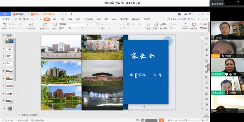 3月22日晚,体育学院通过《腾讯会议》网络平台召开了“家校互动”学生家长视频沟通会议。体育学院党总支书记张根清、院长方慧、党总支副书记谭俊超、全体辅导员老师以及学院四个年级的学生家长参加了本次会议。会议由党总支副书记谭俊超主持。