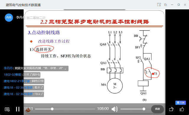 李丹丹老师《建筑电气控制技术》课程直播授课场景