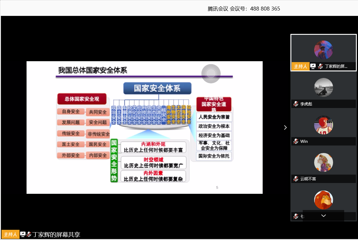 2020年4月15日,是第五个全民国家安全教育日。为引导学生深入学习贯彻习近平新时代中国特色社会主义思想,坚持总体国家安全观,进一步增强我院师生的国家安全意识。体育学院通过主题“云”班会的形式,组织全体学生同上一堂主题为《总体国家安全观视角下的疫情防控》的国家安全教育课。