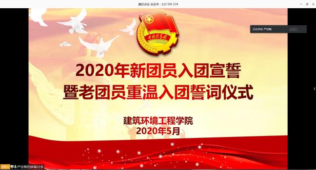 为坚定广大团员理想信念,铭记团员使命,不忘入团初心,58日中午,建筑环境工程学院在腾讯会议平台开展新团员入团宣誓暨老团员重温入团誓词仪式。学院分团委副书记寇誉元、团学干部代表、老团员代表及全体新团员参加此次活动。