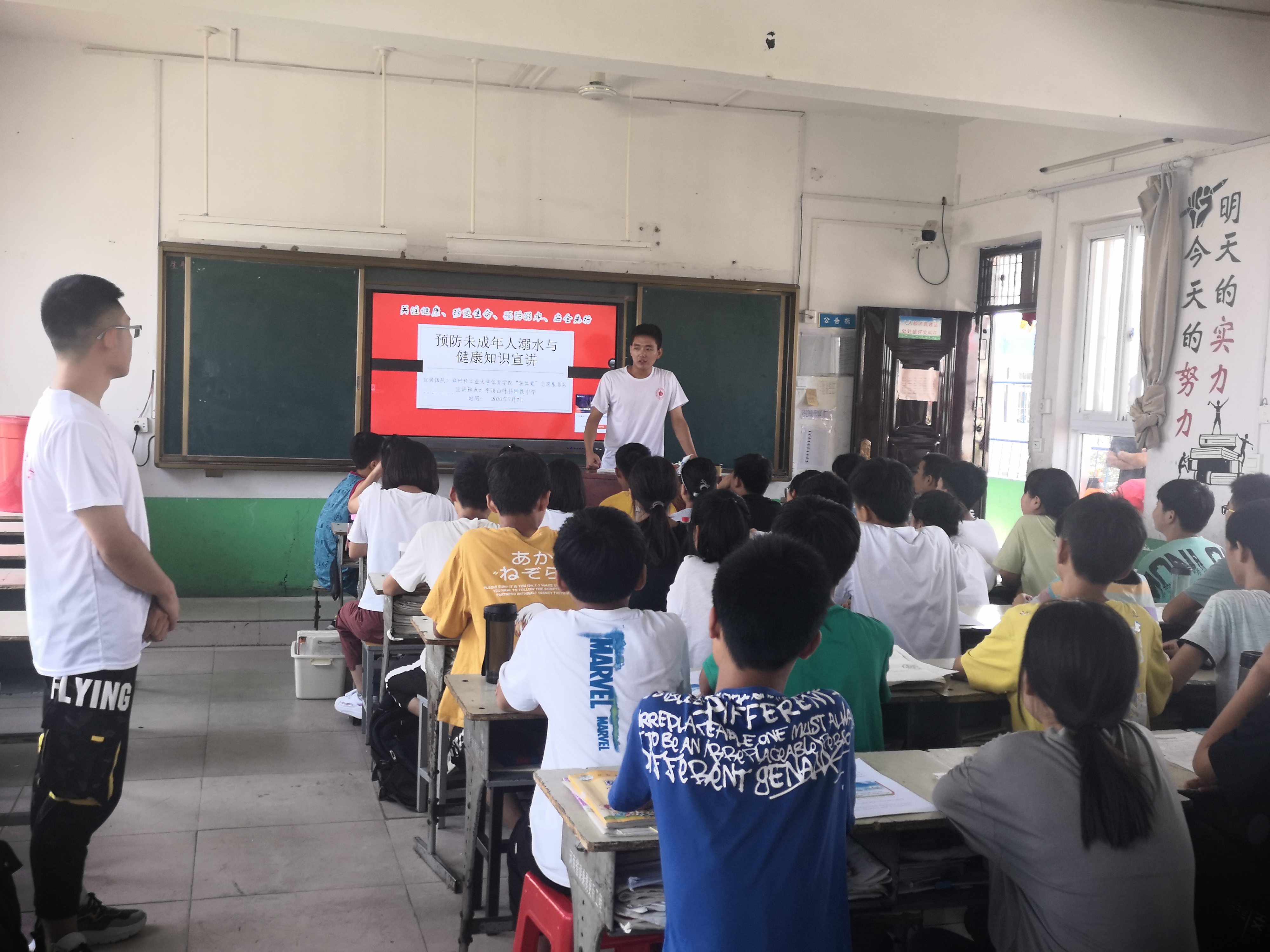 每年的暑期是未成年人溺水事故多发季节,为了增强广大未成年人的安全意识,避免溺水事故的发生,7月7日,18新利直播 体育学院“轻体爱”志愿服务队来到平顶山市叶县回民中学,针对未成年人开展预防溺水与健康知识宣讲志愿服务活动。