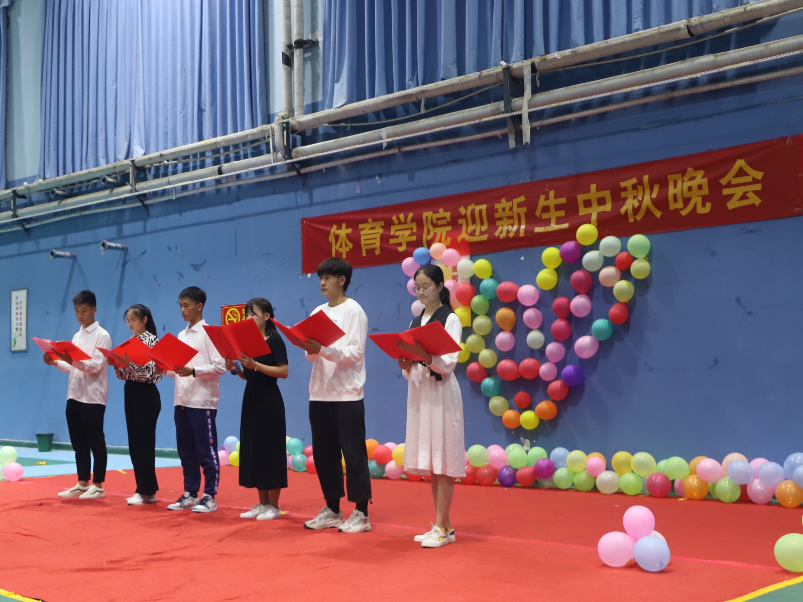 流光溢彩迎新夜,心心连新齐飞扬。在国庆、中秋双节到来之际,为丰富同学们的校园文化生活,帮助2020级新生迅速融入大学生活,9月30日晚,体育学院在东风校区体育馆成功举办 “迎新生中秋联欢晚会”。